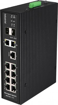 IPTRONIC E8P8G2S2IMV-BT — промышленный управляемый коммутатор уровня L2+, сочетающий надёжность исполнения для жёстких условий эксплуатации с расширенными функциями сетевого управления. Он предназначен для применения в АСУ ТП, транспортных системах, энергетике и уличных инфраструктурных проектах, где требуются как гибкая настройка трафика, так и питание высокомощных PoE-устройств.