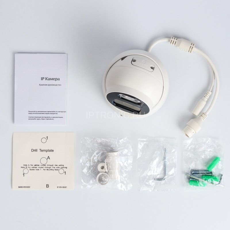Особое внимание уделено условиям ночной съёмки: встроена гибридная LED+ИК-подсветка (по 2 светодиода каждого типа) с дальностью действия до 40 метров, а также механический ИК-фильтр и режим «день/ночь» (автоматический, ручной или по расписанию). В условиях полной темноты камера переходит в чёрно-белый режим с нулевой светочувствительностью, сохраняя чёткость изображения. Для улучшения качества картинки реализованы WDR (120 дБ), 3D-шумоподавление, коррекция геометрических искажений, антитуман и компенсация засветки, что особенно важно при контрастном освещении.