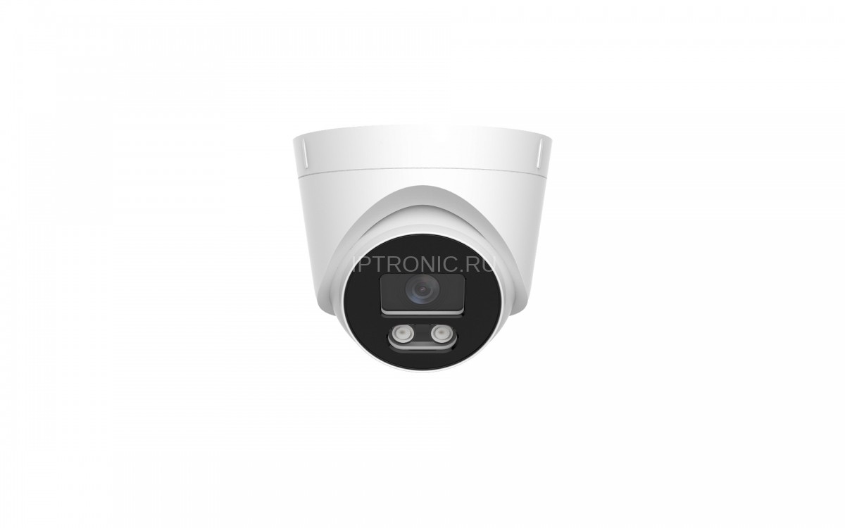 Купольная IP-видеокамера с 4‑мегапиксельной Progressive Scan CMOS-матрицей (1/3 дюйма) обеспечивает видеозапись в разрешении до 1920×1080 при 25 кадр./с, оснащена фиксированным объективом 2,8 мм (угол обзора — 95° по горизонтали, 53° по вертикали), инфракрасной подсветкой на 30 м и механическим ИК-фильтром для автоматического переключения между цветным и ч/б режимами; поддерживает двойной видеопоток с кодеками H.264/H.264+/H.265/H.265+/MJPEG, аудиокодеки G.711A/U и AAC, встроенный микрофон, облачный сервис IPEYE и мобильное приложение Iptronic Pro, совместима с ONVIF 24.12 (профили S/T/M), питается от 12 В / 700 мА или через PoE (IEEE 802.3af), имеет степень защиты IP66, рабочий температурный диапазон от −30 °C до +60 °C и пластиковый корпус размером 110×95×110 мм.