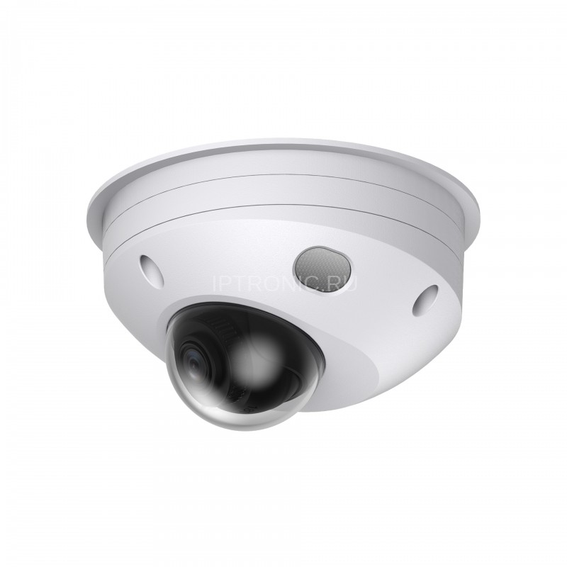 Купольная IP-видеокамеру с 5‑мегапиксельной матрицей SONY Starvis CMOS (1/2.8"), обеспечивающей разрешение до 2592×1944 пикселей и светочувствительность 0.003 лк в цветном режиме; оснащено фиксированным объективом 2.8 мм (F1.6) с углами обзора 96°/72°/124°, гибридной LED+ИК подсветкой (2+2 светодиода, дальность 25 м), поддержкой WDR 120 дБ, 3D-шумоподавлением и механическим ИК-фильтром; реализованы два видеопотока, кодеки H.264/H.265 (включая «+»-версии), битрейт 256 Кбит/с–8 Мбит/с, встроенный микрофон, слот microSD до 512 ГБ, поддержка ONVIF 19.12 (профили S/T), облачного сервиса IPEYE и мобильного приложения Iptronic Pro; имеется PoE (IEEE 802.3af), сетевые интерфейсы RJ-45, защита IP67, металлический корпус, рабочий диапазон температур от –30 °C до +60 °C, питание 12 В / 700 мА, встроенная грозозащита 6 кВ, вес 444 г.