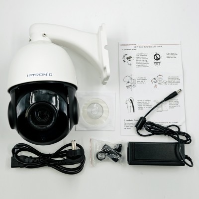 Скоростная поворотная IP-видеокамера оснащена 5‑мегапиксельной матрицей формата 1/1.8″ Progressive Scan CMOS с максимальным разрешением 2592×1944 , поддерживает алгоритмы сжатия H.264/H.265 и их улучшенные версии, обеспечивает до 60 кадров/с при максимальном разрешении. Вариофокальный моторизованный объектив с фокусным расстоянием 5.35–96.3 мм, углы обзора до 50° по горизонтали, механический ИК-фильтр, WDR 120 дБ и 3D шумоподавление. Инфракрасная подсветка с дальностью до 80 м, чувствительность 0.007 лк в цветном режиме и 0 лк — в Ч/Б. Панорамирование: 360° по горизонтали (до 30°/с) и до 93° по вертикали (15°/с), 255 предустановок и 8 маршрутов патрулирования. Поддержка PoE (IEEE 802.3af), ONVIF 2.4 (профили S/T/G), слот microSD до 256 ГБ, 2 тревожных входа/выхода, аудиоинтерфейсы (RCA и встроенный микрофон). Корпус — металлический, защита IP67 и IK10, диапазон температур −40…+60 °C, встроенная грозозащита 4.5 кВ. Доступны интеллектуальные функции: детекция и распознавание лиц, распознавание номеров, тепловая карта, анализ очередей, вторжений, оставленных предметов и др.