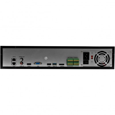 Регистратор поддерживает современные видеокодеки H.264, H.264+, H.265 и H.265+, что значительно снижает объём хранимых данных без потери качества изображения. Возможна запись как по расписанию, так и по событиям: движение, умные события, ручной запуск. Интерфейсы вывода включают 2×HDMI и 1×VGA, с возможностью отображения до 64 каналов одновременно (в зависимости от разрешения), при этом один из HDMI-выходов поддерживает 4K-разрешение. Также реализована функция двухсторонней аудиосвязи (интерком), 16 тревожных входов и 4 выхода, интерфейс RS-485, eSATA и три USB-порта (включая USB 3.0), что делает устройство гибким в интеграции с различными системами безопасности.