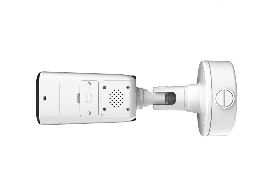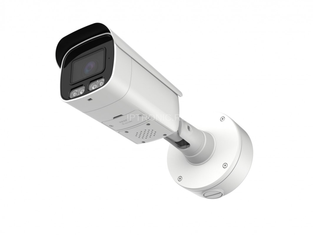 Вариофокальный, моторизованный объектив с фокусным расстоянием 2.8-12 мм. Гибридная LED+ИК подсветка с дальностью до 35 метров. Поддержка функций видеоаналитики включая распознавание лиц и автомобильных номеров. Встроенный микрофон и динамик. Слот для карт памяти microSD до 256Гб. Поддержка POE IEEE 802.3af, Аудиовход и аудиовыход. Тревожный вход и выход. Прочный металлический корпус, с классом вандалозащищенности IK10. Класс пылевлагозащиты IP67.