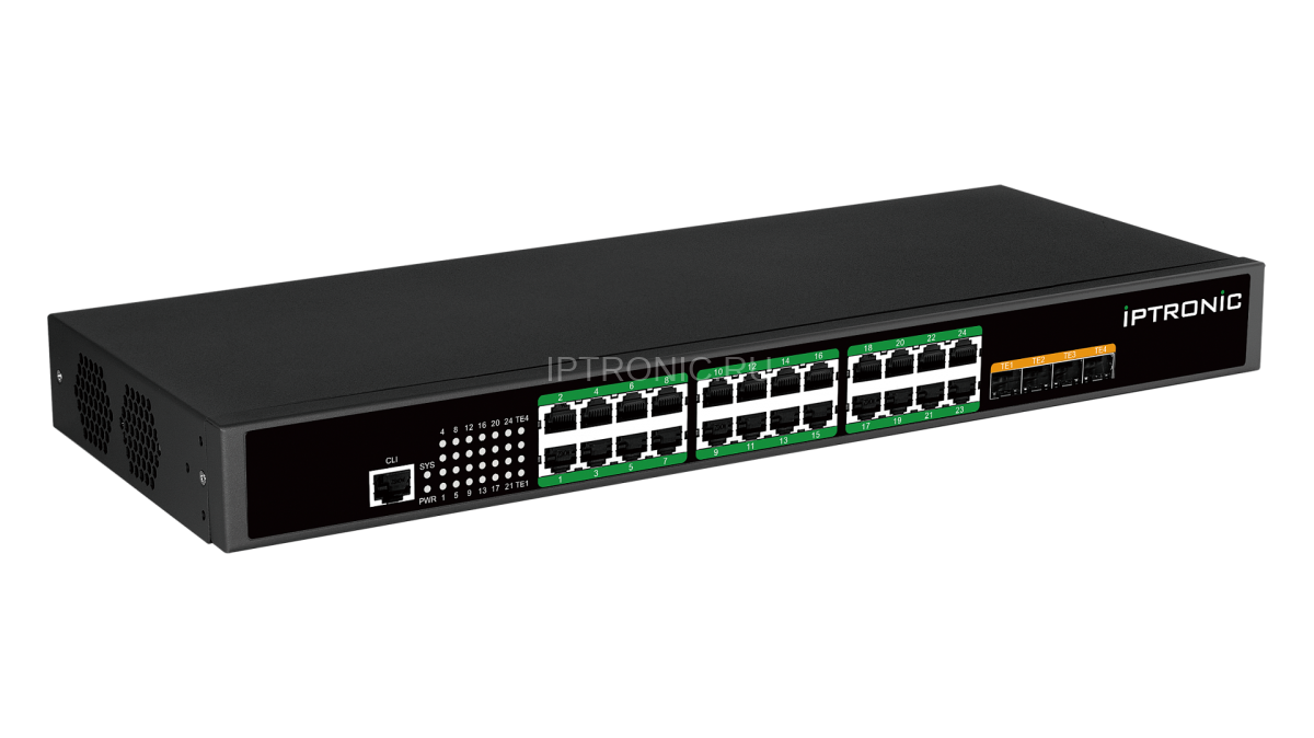 IPTRONIC IPTS-PS3-E24P24S410GMN позиционируется как коммутатор для построения высокопроизводительных комплексных IP-сетевых решений на предприятиях среднего и крупного бизнеса, с требованиями к гигабитной пропускной способности на внутренних и 10-ти гигабитной пропускной способности на восходящих портах.