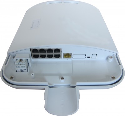 - 8× 10/100 Мбит/с гигабитных портов PoE (IEEE 802.3af/at, общая мощность PoE до 120 Вт)
