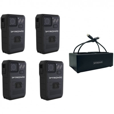 Комплект IPTRONIC IPT-BC1 (4шт) + док-станция IPTRONIC IPT-DS-CT4. Персональное носимое устройство регистрации информации окружающей обстановки. Информационный дисплей. Поддержка записи 2К. Продолжительность записи до 20 часов. Ночная съемка. Встроенный аккумулятор 4000мАч. Герконовый слайдер для включения/выключения. Класс защиты IP67. Поддержка выносной камеры. Терминал зарядки и передачи данных на ПК. Терминал предназначен для автоматической передачи данных на персональный компьютер и одновременной зарядки 4 единиц устройств видеорегистрации информации. С персонального компьютера можно выполнять настройки устройств, управлять архивом, синхронизировать время..