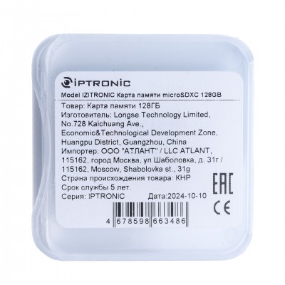 IZITRONIC Карта памяти microSDXC 128GB - карта памяти microSDXC со скоростью записи до 50 Мб/сек и скоростью чтения до 80 Мбит/с. Класс скорости - 10. Поставляется без адаптера.