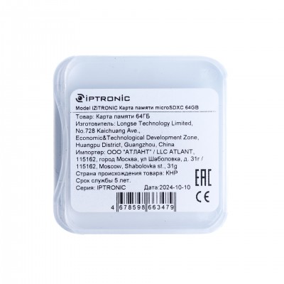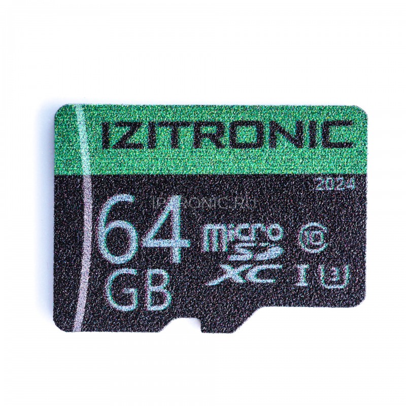 IZITRONIC Карта памяти microSDXC 64GB - карта памяти microSDXC со скоростью записи до 20Мб/сек и скоростью чтения до 25 Мбит/с. Класс скорости - 10. Поставляется без адаптера.